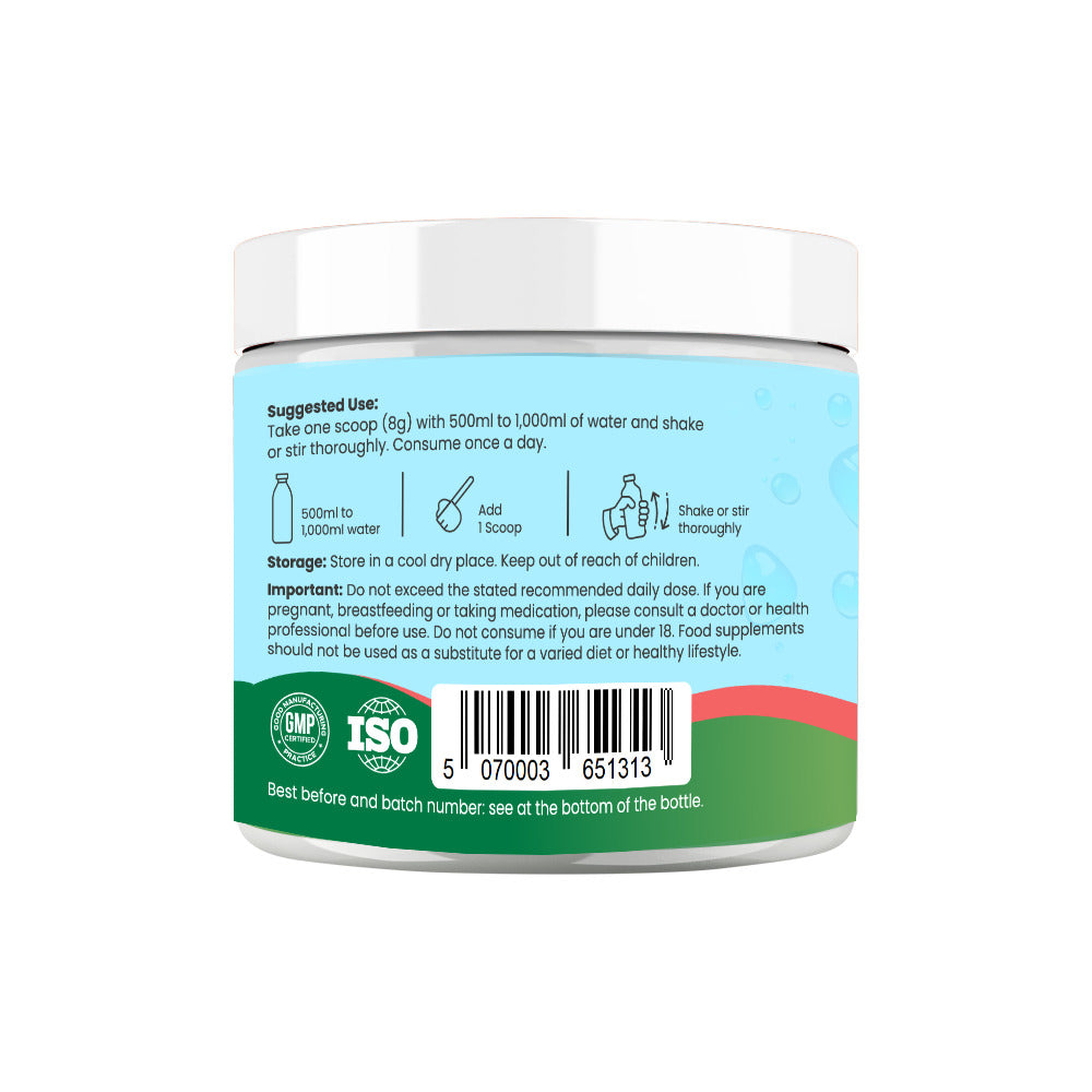 Take one scoop (8g) with 500ml - 1,000ml of water and shake or stir thoroughly.